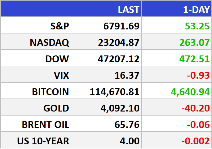 Stocks ended last week on a record-breaking note: the Dow closed above 47,000 for the first time, the S&P 500 climbed 0.79%, and the Nasdaq gained 1.15%. Futures extended those gains Sunday evening, pointing to more momentum ahead of a pivotal week.
